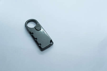Code lock. Close-up of a combination lock with chrome numbers on a white background. Security concept