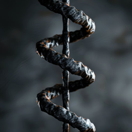 This striking image showcases a twisted metal coil, emphasizing intricate texture and dramatic lighting, perfect for industrial and abstract art projects.