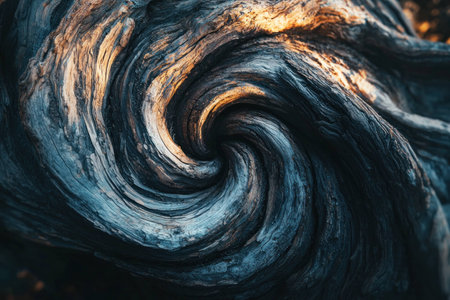 Abstract close up of twisted wooden bark showcasing intricate texture and natural beauty, perfect for nature inspired designs and organic themes