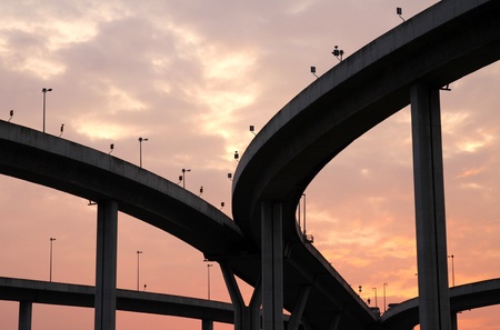 concrete structure of express way against beautiful dusky sky use for infra structure and public construction theme