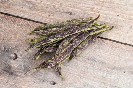 Delicious large organic Smilyan beans on a wooden background from Smilyan Bulgaria
