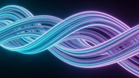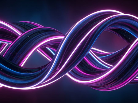 (331) showing twisted neon light tubes flowing in a wavy pattern against a dark background. High resolution image suitable for commercial use.