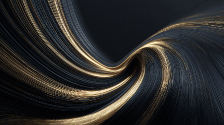 This close-up image features an intricate textured pattern of interwoven black and gold strands. The fluid lines create an elegant and modern design, perfect for artistic projects.