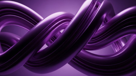 This digital artwork features flowing, interwoven lines in shades of purple and white. The composition highlights curves and movement, creating a sense of depth and dynamism. The image exhibits a smooth texture and soft lighting, ideal for design backgrounds and conceptual presentations.