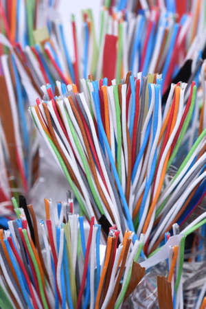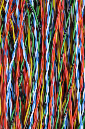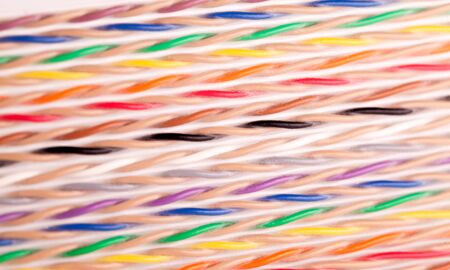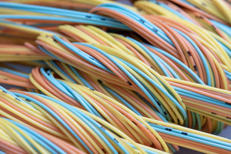 Colored copper telecommunication cables closeup