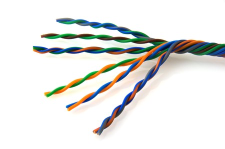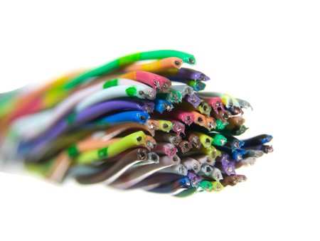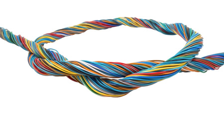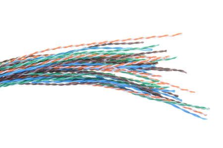 Color telecommunication cable on white background