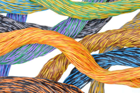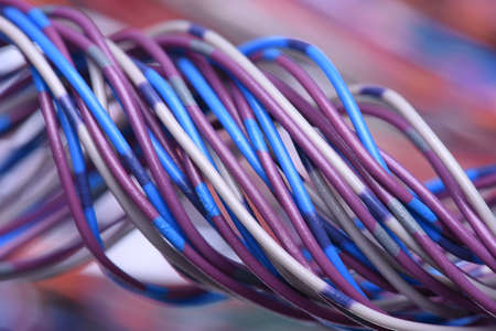 Electric cable close-up. Electrical wires in various colors and shapes.