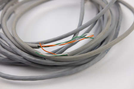 Close-up telecommunication cable isolated on white background