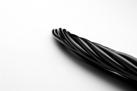 Isolated black wire cable on white background abstraction