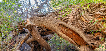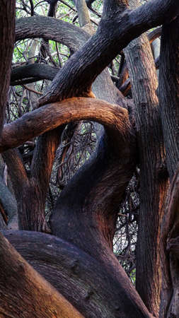 Interesting twisted shapes and patterns of a growing tree branches