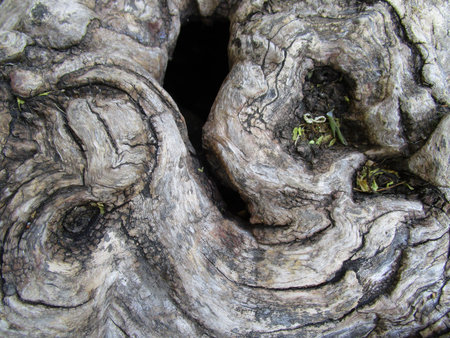 The texture of a big dead tree trunk