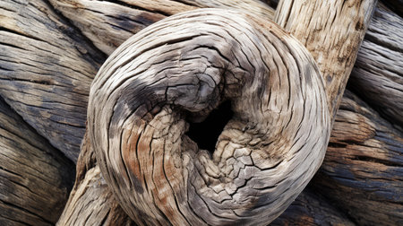 An extreme close-up reveals the detailed textures and patterns of weathered wood, highlighting its natural beauty and unique formations.