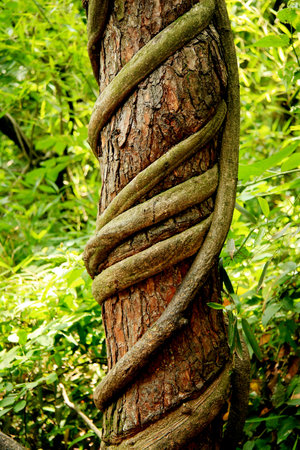 Detail of a twisted liana plant in the jungle forest of Tikal, Peten, Guatemala