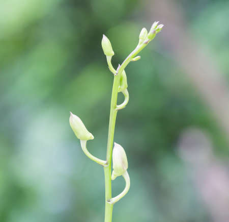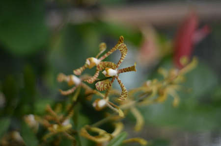 Bulbophyllum falcatum orchid in tropical flower bloom