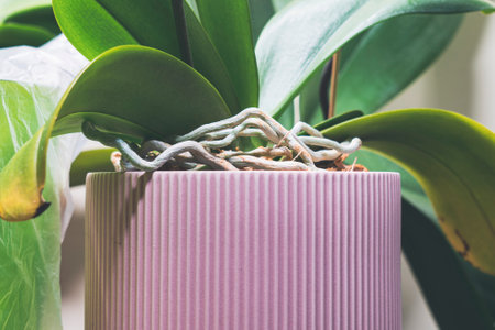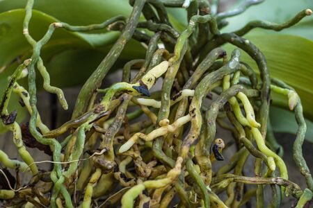 Orchid roots close up. Phalaenopsis orchid concept.
