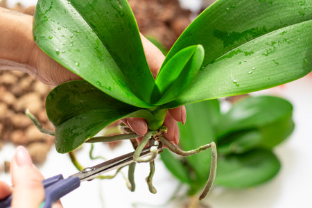 Concept of taking care of healthy roots. damaged orchid