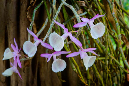 Wild orchid flowers with beautiful purple and white colors.