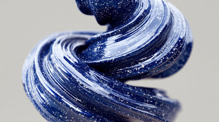 This mesmerizing image features a swirling deep blue and white paint texture with sparkling elements, perfect for art and design projects, invoking creativity and style.