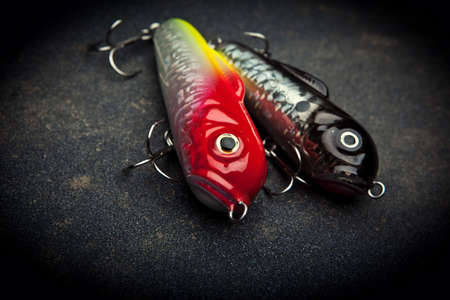 fishing lures close-up on a dark background