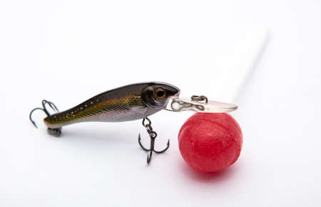 Artificial bait for fishing on white background.