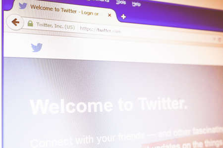 Close up of Twitter website on a computer screen. Twitter is a free social networking and microblogging service