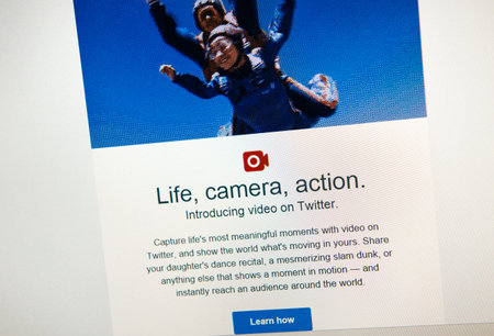 PARIS, FRANCE - FEBRUARY 18, 2015: Social Network Twitter email newsletter announcing the introduction of video posts on the social platform. Twitter has more than 500 million users, out of which more than 302 million are active users