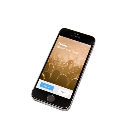 Iphone 5s with twitter app isolated on white background