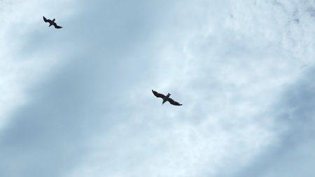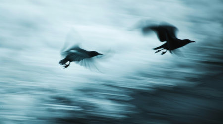 duet of birds mid-flight, dynamic composition, crisp motion --chaos 30 --ar 16:9 --v 6.1 Job ID: cb61b710-e6f2-4094-8a57-769488f0ccbf