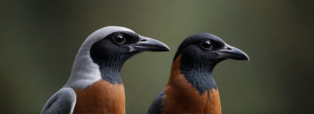 Pair of birds sitting on a branch in the forest. Wildlife scene from nature.
