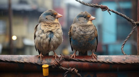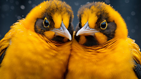a pair of beautiful birds in the forest with raindrops and nature blurred background. generative ai