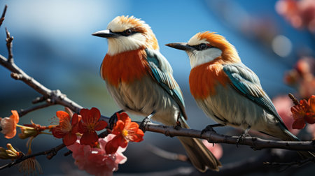 Aromatic Birds tree branch flowers. Wild bird day. Generate Ai