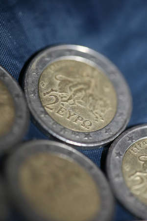 Macro shots of euro coins background 2 Euro coin year of manufacture 2002 country Greece high quality big size print