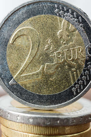 2 euro coins, money detail with reflection