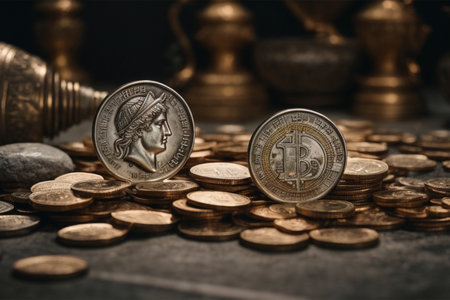 illustration of roman denarius in cryptocurrency concept
