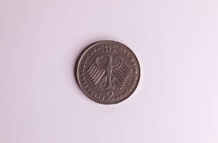 Single 2 DMark coin of the no longer current currency Deutsche Mark from Germany