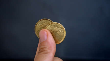Close up and selective focus point on coin textures