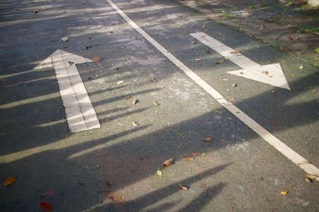 Asphalt road with white two head arrow sign