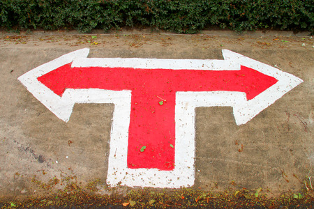 two direction arrow sign on grunge floor
