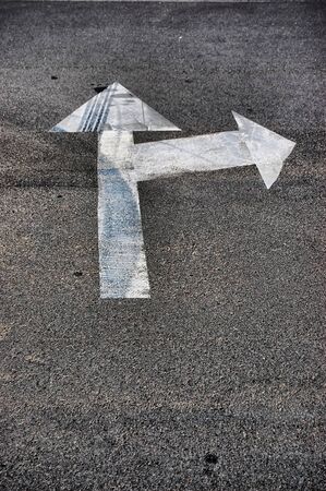 A bi-directional arrow symbol on an asphalt road for the concept of choice