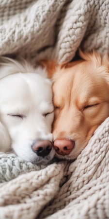 Cozy Canine Companions Peaceful Sleeping Dogs Snuggled in Warm Blankets.