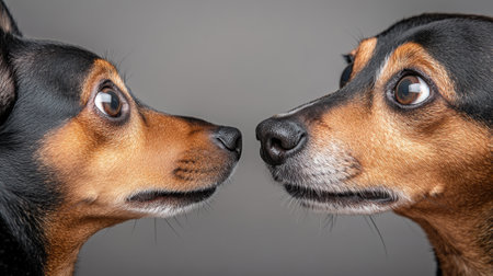 Two dogs looking at each other with one dogs nose in front of the other, AI