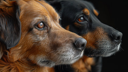 Two dogs on a black background. Portrait of a dog.