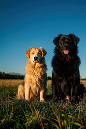 Two Domestic Dogs Sitting Together in a Beautiful Outdoor Setting, Showcasing Their Friendship