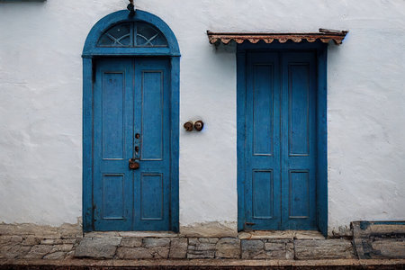 Old doors from the past. Beautiful vintage facade depicting two old doors and one window. There must be many memories which walked in and out of those. Aged decay and rough memory retry rustic style.