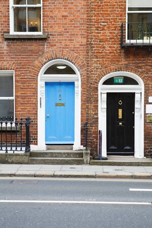 Colorful georgian doors in Dublin, Ireland. Historic doors in different colors painted as protest against English King George legal reign over the city of Dublin in Ireland