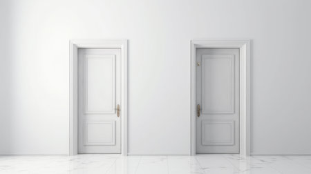 Two Closed Doors with Different Color in Front in the Room 3D Illustration, Choice Concept