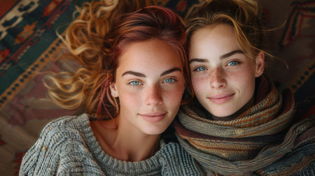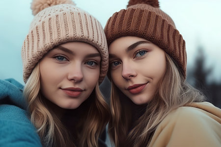 Girls warm cloth selfie. Person girl. Generate Ai