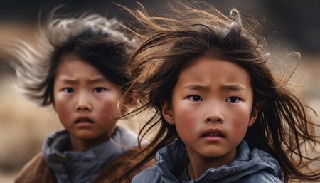 cropped shot of two young girls celebrating together, created with generative ai
