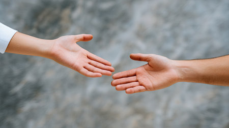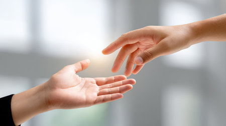 Two hands reach toward each other in a gentle moment of connection, symbolizing trust and empathy in human relationships, with a soft, minimalistic background.
