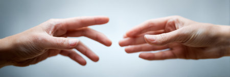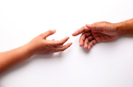 Two human hands reaching out, almost touching, symbolizing connection, support, and relationship.